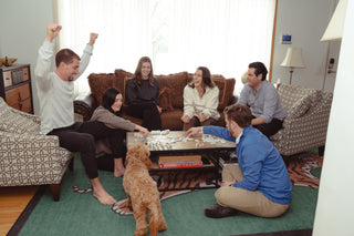 Snuggle up and enjoy the cozy ambiance in the Green Retreat, a downstairs living area, adorned with a velvet sectional, side chairs and warming gas fireplace.